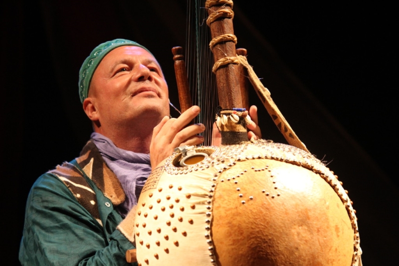 Tormenta Jobarteh, ein gambisch deutscher Geschichtenerzähler Verwandelt die Bühne in einen pulsierenden afrikanischen Marktplatz. Er erzählt mit viel Humor eigene und mündlich überlieferte Geschichten aus Afrika und dem Orient. Der mehrfach preisprämierte weiße Griot erzählt von Herzen mit großer Kraft und mitreißender Lebendigkeit! Dabei begleitet er sich selbst virtuos auf der Kora, einer westafrikanischen 21-saitigen Harfenlaute. Sprache, Musik und Rhythmus verweben sich zu einem Zuhör-Erlebnis. Ein interaktives Musik und Erzählprogramm für Kinder und Eltern.